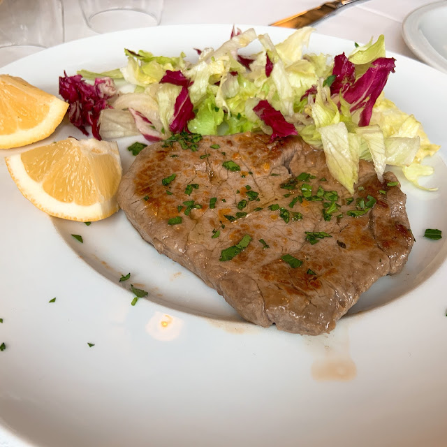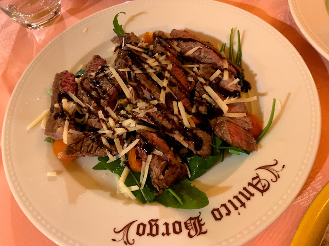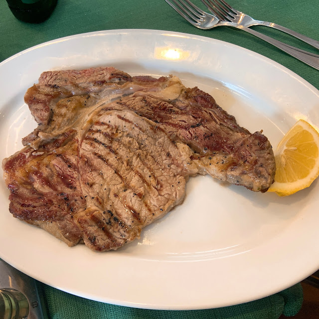 午餐吃Antica Osteria Zi' Paoluccio,是我們全程吃到最好吃的牛排,是阿根廷的沙朗牛排,調味和火候都恰到好處,讓人覺得滴口水說義大利人很會做牛排是真的。後來旅途中我們不斷點牛排,想要重現那天的滋味,卻發現沒有一家餐廳能挑戰小鎮牛排的實力。