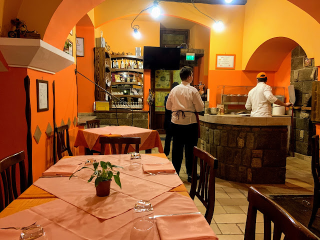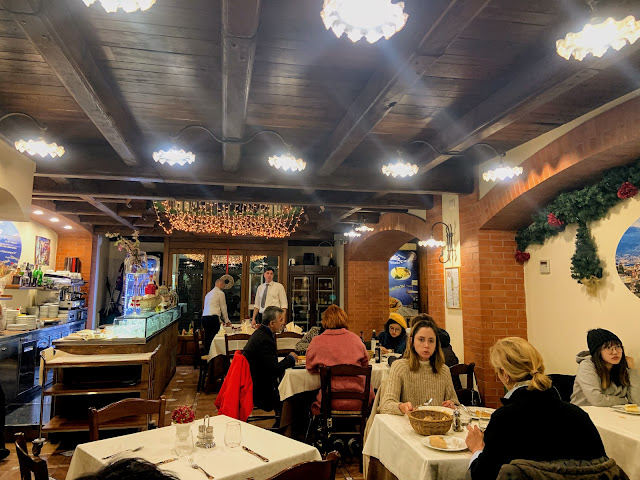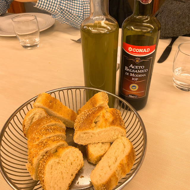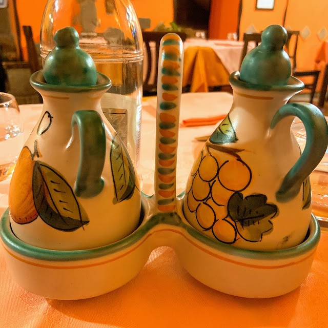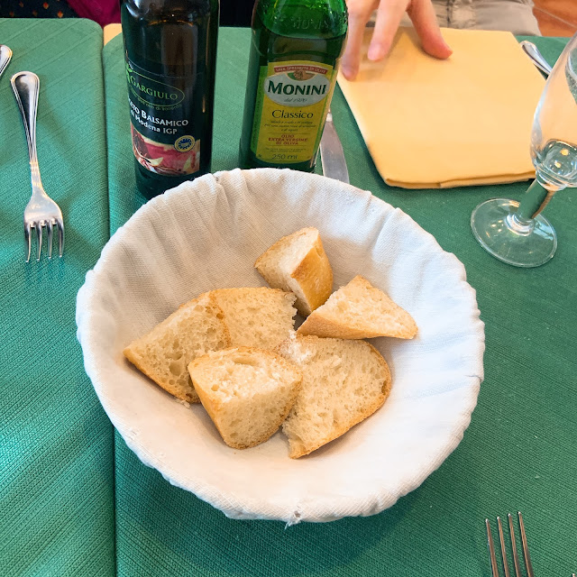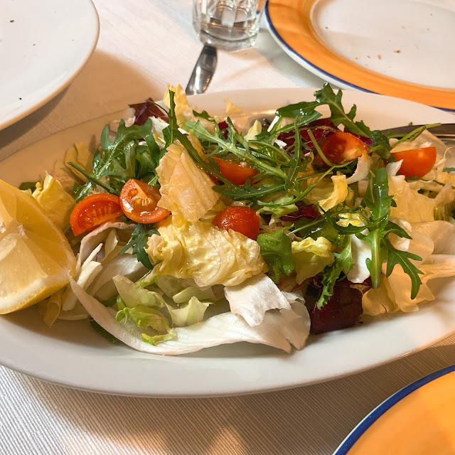 中午我們就先去比較遠一點的那家Ristorante C'era una volta,這家是當地人吃的餐廳,有看到郵差和警察弟兄在聚餐,口味比較粗飽,服務員不說英文。令人印象深刻的是即使是這種粗飽路線的餐廳,餐桌的布置還是蠻講究的。