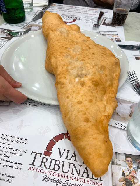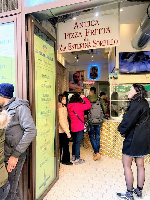 拿坡里有個模仿米蘭購物拱廊的購物拱郎Galleria Umberto I,拱廊後面就是拿坡里的表參道Via Toledo,吃的逛的都集中在那,我們吃了街上很有名的炸披薩店Antica Pizza Fritta da Zia Esterina Sorbillo(意思是 Esterina Sorbillo阿姨的古老炸披薩)。