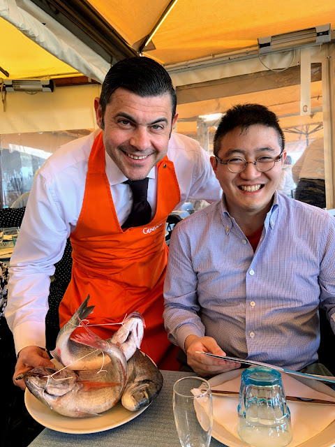 朋友說西西里島是義大利的築地,吃過這餐晚餐明天晚餐不知道在哪著落,藉著這個理由終於又可以點魚,這裡點魚都愛把鮮魚拿給你看,讓你自己選,我們亂選了一條看起來比較小的。