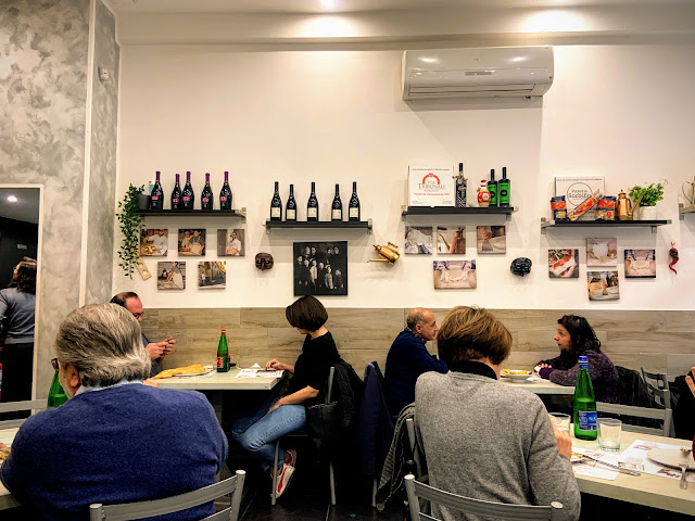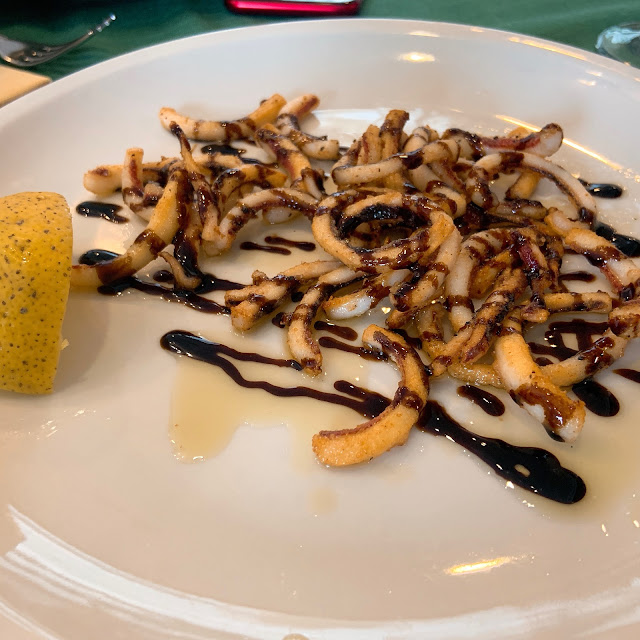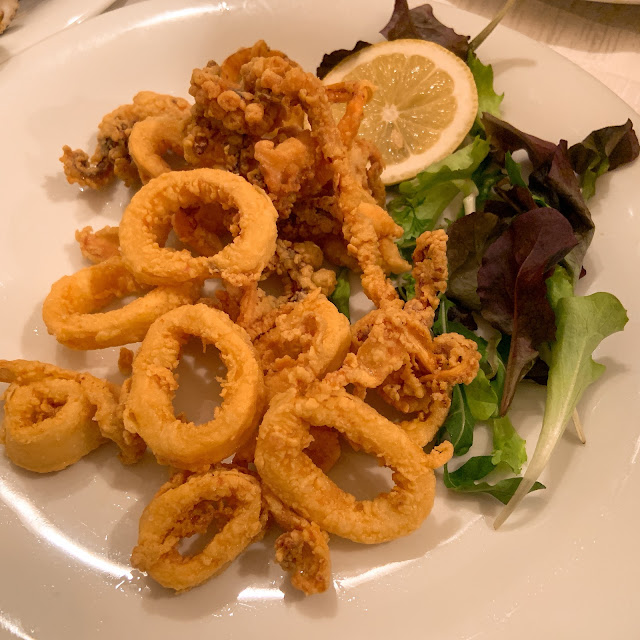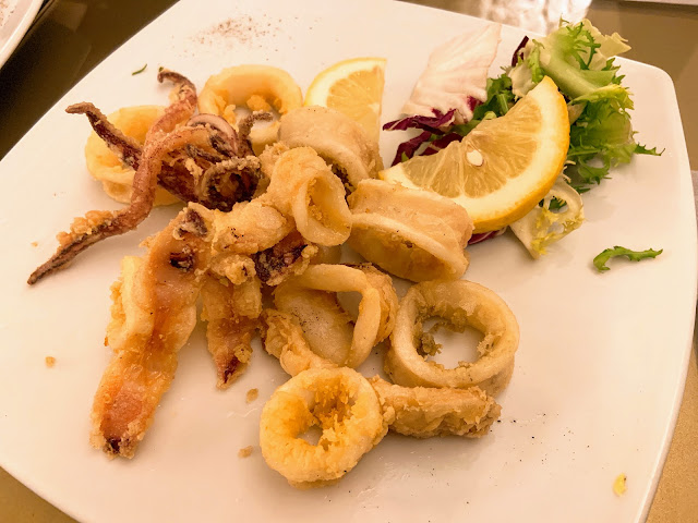 世界三大夜景之一的拿坡里夜景個人覺得非常普通,陽明山夜景還比較好看,看完夜景我們就在附近吃飯,朋友訂了一家在地窖的餐廳Borbonika Classica Cucina Napoletana Vomero,是我們旅程中非常懷念的一餐,它的炸花枝是旅途中吃到最好吃的,炸完依舊花枝味很濃。