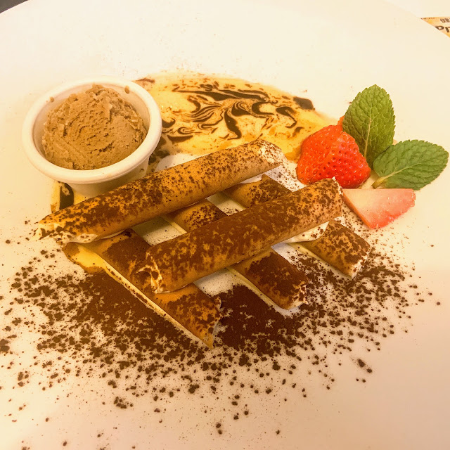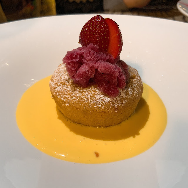 這餐的甜點是西西里島出產的甜點,教父吃的Cannoli,的解構版,因為尺寸太大了,感覺過甜,Cannoli還是吃小小一個最美味。