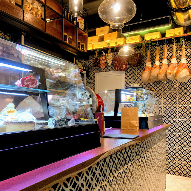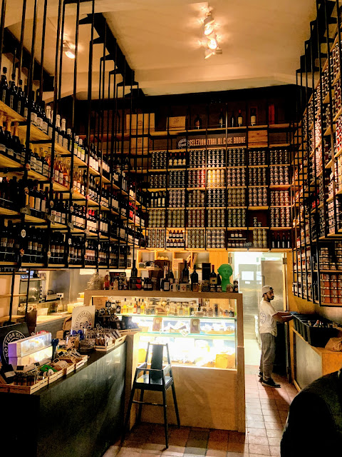 晚上因為要趕渡輪去西西里島,就吃了Salerno的表參道Corso Vittorio Emanuele上的高級Panini店Farcito - Pane e Companatico,店裡的火腿看起來都很講究,菜單琳瑯滿目,目不暇給。