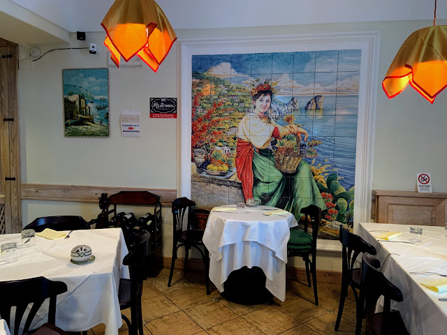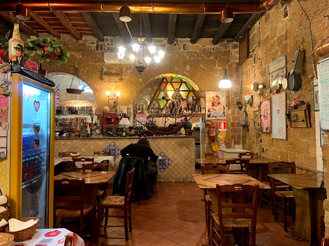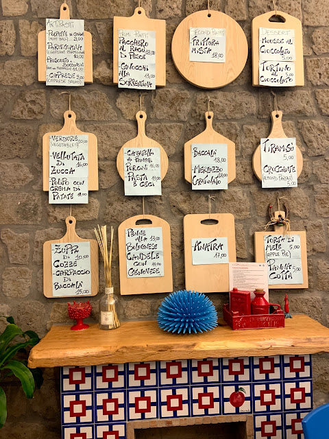 冬天的卡布里島是個死城,幾乎每家店門口都寫著"休息至2019年4月",餐廳也都沒開,最後我們只求有東西吃,在一個教堂後面曲折的小巷子裡,飛蛾撲火進去了一家google只有3.1分的餐廳Ristorante Donna Rachele。