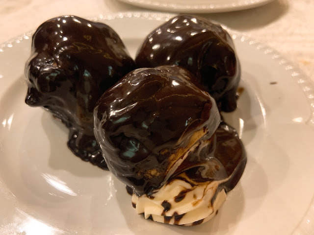 甜點我們點了檸檬蛋糕和巧克力泡芙,請原諒我一直幫他們亂取名。檸檬蛋糕有濃濃酒味,濕濕的蛋糕吸滿了酒,跟提拉米蘇系出同門的感覺,檸檬味很濃,還蠻清爽好吃的。