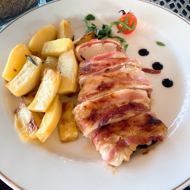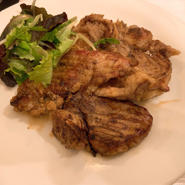 套餐有一個口味中規中矩的海鮮義大利麵,主餐開始進入雷區,魚很淡,烤豬超級鹹,旁邊還配上超級無敵鹹的鹹菜當作配菜。