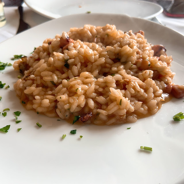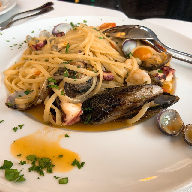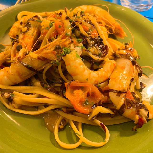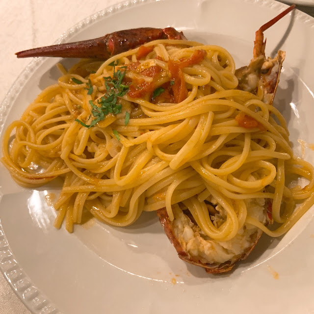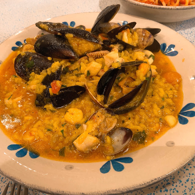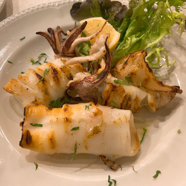 可能因為午餐太難吃了,我們在這家餐廳報復性地點了龍蝦義大利麵、牛排、烤花枝、海鮮義大利燉飯等等。