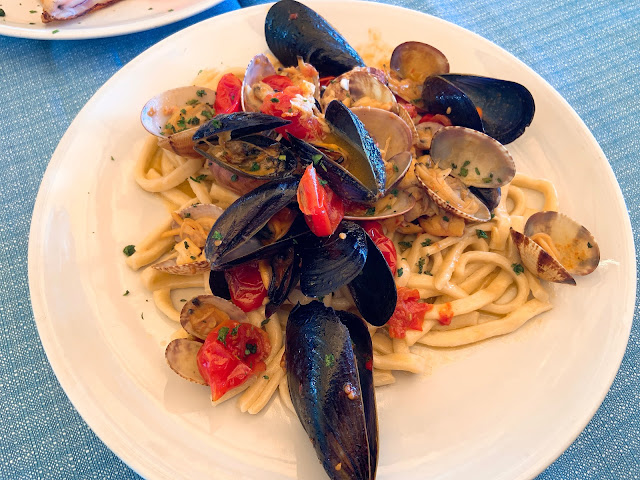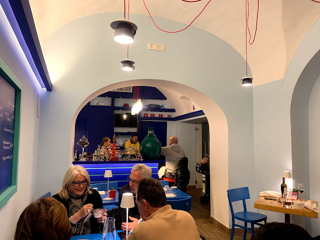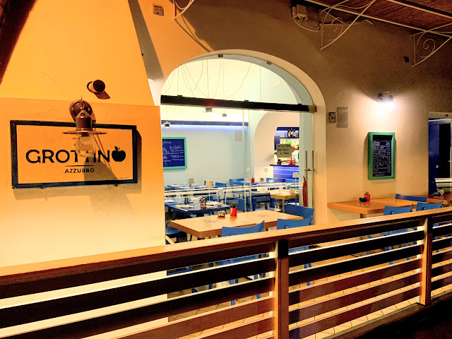 Grottino Azzurro比較潮,比較多觀光客,義大利文菜單很有個性地寫在牆壁上,不過會有英文很好又熱情的服務生來跟你解釋,我懷疑這是他們跟客人打開話題的策略,這裡的服務生真的很愛聊,跟我們說冬天義大利沒有淡菜的就是他們。