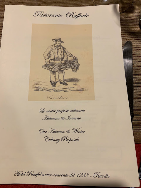 冬天的Ravello只有一家餐廳有開,就是我們飯店Hotel Parsifal的餐廳Il Ristorante Raffaele ,不過這是飯店跟我們說的,不知道是不是一個陰謀,總之我們晚餐就在飯店吃了,還點了一人一套套餐,結果真是太雷了,毫無懸念榮登本趟旅行第一難吃餐廳。