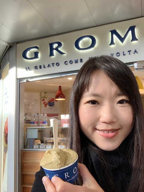 沒錯,在義大利吃了那麼多家冰淇淋,最好吃的還是第一家,在羅馬火車站遇到的Grom,它的店長得跟香港IFC那間一模一樣,有種親切感,味道比香港IFC店更好吃,非常濃郁綿密。