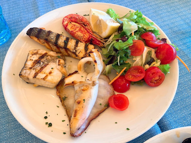 除了炸披薩沒有記憶點之外,拿坡里吃到的餐廳都不錯。逛完蛋堡,就在旁邊的海濱大道吃露天餐廳Gusto & Gusto(意思是Taste & Taste),本來以為這種地點一定是騙觀光客的難吃餐廳,想不到除了服務生非常積極推銷本日現流魚以外,還是一家認真做菜的好餐廳。