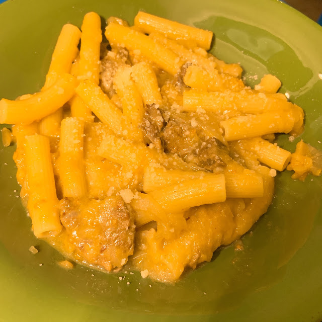 一道很平凡的番茄炒肉水管麵,是療癒類家常菜。