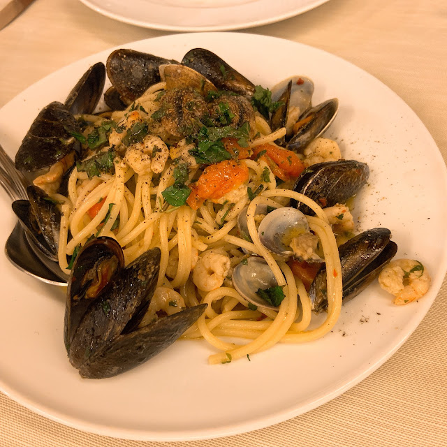 我們還是蠻有吃東西的好運的,本來以為在Palermo的晚餐會是最後一次機會好好坐下來吃晚餐,結果最後一天飛回羅馬,住在機場旁邊的Hilton,安頓好之後餐廳還沒關,又吃了一頓。