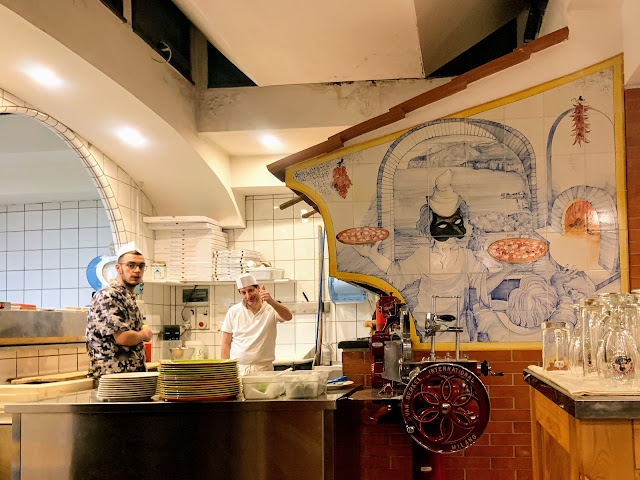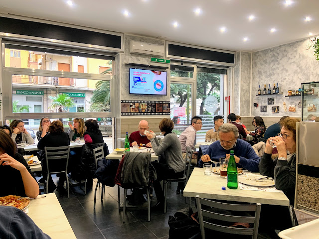 Salerno是個比拿坡里還拿坡里的一個城市,一到我們就誤打誤撞進入了類似貧民區的地方,非常破舊,在破舊的巷子中我們找到一家google推薦的披薩店Pizzeria Sorbillo,即使到了下午依然高朋滿座,餐廳只賣披薩,桌距比較擁擠,服務生很忙。