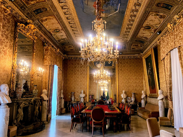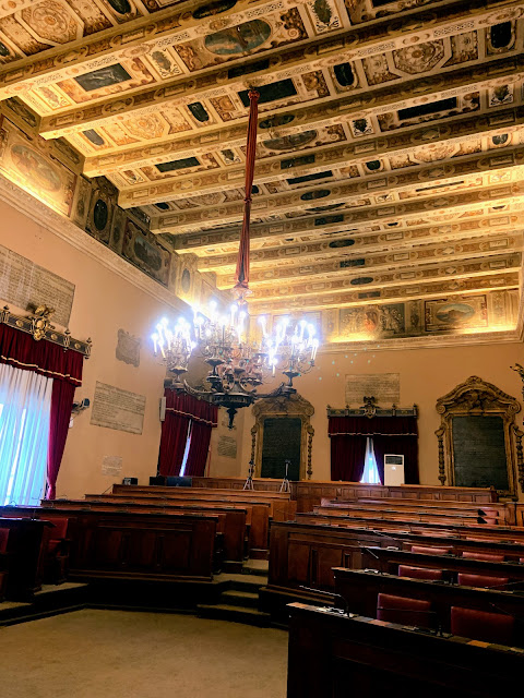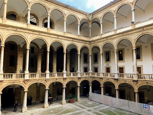 在Palermo的時候我們sim卡的網路流量都已經用完,其實海軍元帥聖母教堂就在裸體雕刻噴泉的旁邊,但沒有google map的我們一直找不到。亂入了Palermo的市政府,遇到幾個在聊天打瞌睡的阿伯,老伯招呼我們參觀古色古香的議事廳,他們的政府辦公室也太美了,有古代政治電影感。