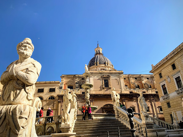 我們在Palermo停留的時間大約只有24小時,景點只能走馬看花,而且這次去的城市有點多,沒有時間好好了解每一個地方景點的歷史典故,有點可惜。除了以上三個之外,裸體雕刻噴泉和旁邊的四首歌廣場也很值得一看。
