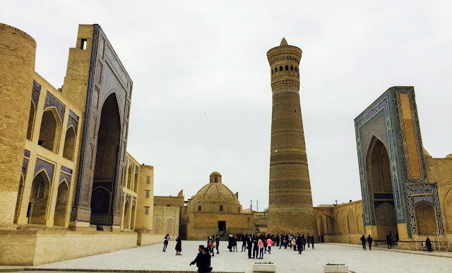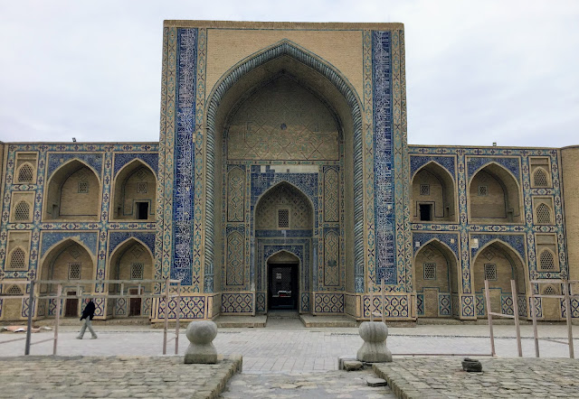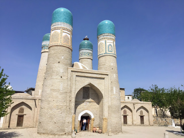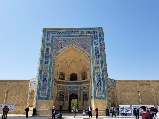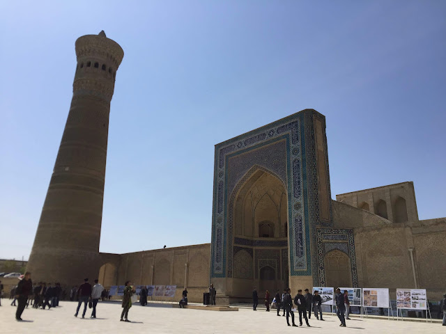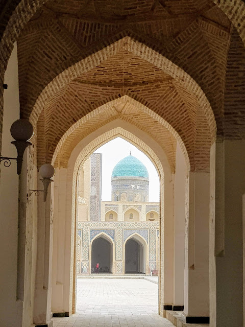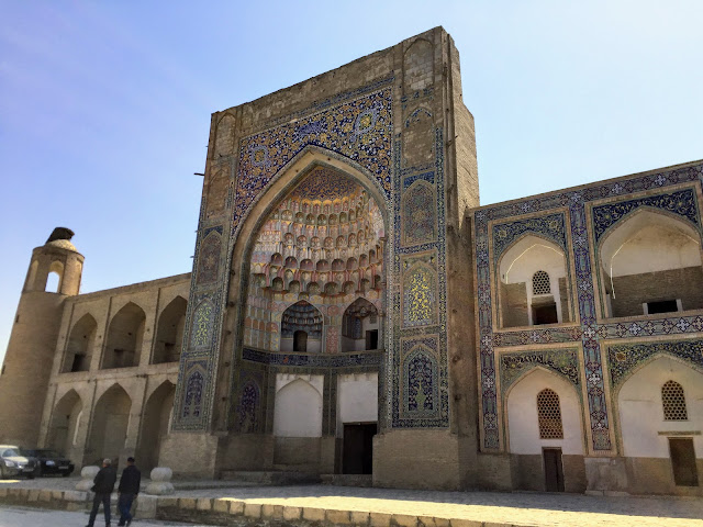 布哈拉跟薩馬爾罕的建築長得非常像,我們的導遊跟我們說,"薩馬爾罕是彩色的,布哈拉是單色的",一語突破盲點,不過布哈拉還是有一些例外的彩色建築。