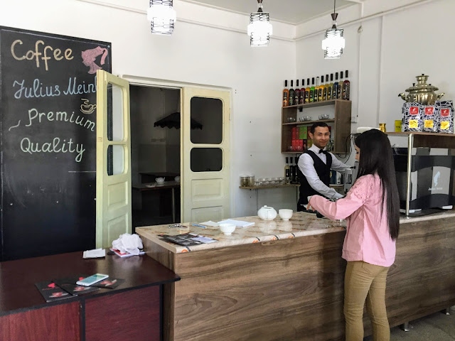 在布哈拉街上看到一家貌似正宗的咖啡店Julius Meini,在大漠幾天我已經很久沒有喝到真正文明世界的咖啡,喜出望外進去。