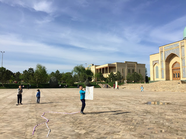 不過塔什干勝在比較有市民生活氣氛,舊城區廣場上有很多小孩在放風箏,不像另外兩個城古蹟裡全是紀念品店,整個城市圍繞的觀光客而生的感覺。