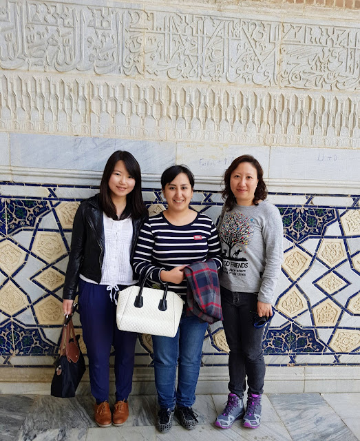 之前我的巴林同事像洩漏國家機密一樣神神秘秘給我看他妹妹的照片,說阿拉伯女生的照片絕對不能讓人看到,勉強為我破例一次。烏茲別克的女生也沒這顧慮,路上一直有女生要跟我合照。