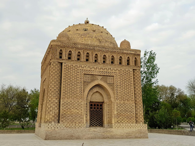 布哈拉是九世紀波斯人的薩爾曼王朝的首都,將薩爾曼王朝領土擴張到最大的國王 Ismail Samani 被認為塔吉克的民族英雄,Ismail Samani 的陵墓就在布哈拉。附帶一提,我們的導遊也是塔吉克人。