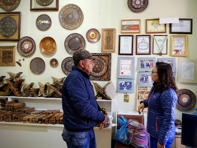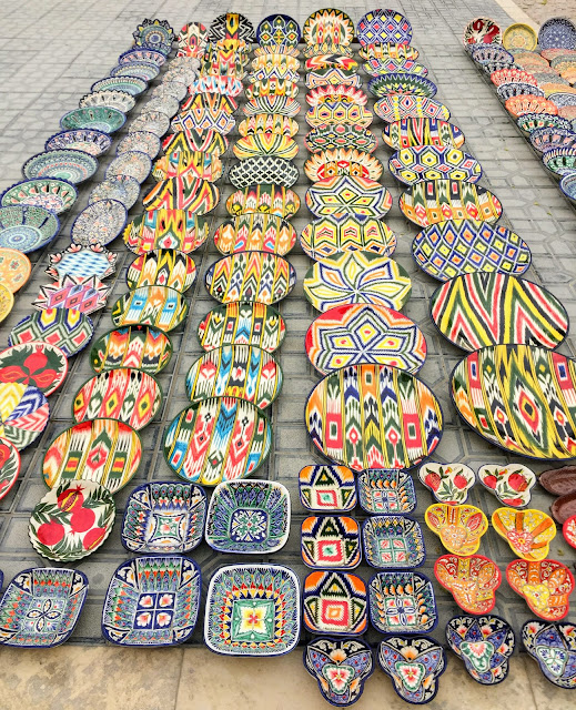 布哈拉的人的美感和手藝都不賴,瓷器、刺繡、木雕,各式各樣的手工藝品全都很美,我們逛得不亦樂乎。