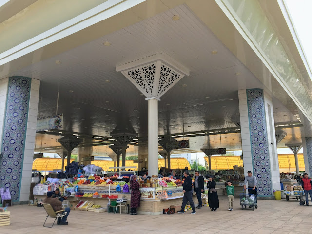 塔什干的大市集,大圓頂建築本身就有觀光價值,有戶外區和室內區,賣很多稀奇古怪的東西,比如1/3支三星手機大的紅棗、小烏龜還有整支吊掛、血腥味撲鼻的牛。