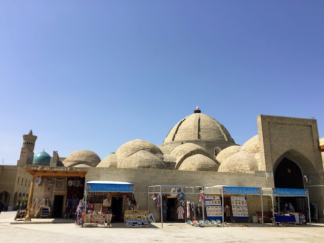 跟薩馬爾罕比起來,布哈拉的店更集中,整個小城沿路全都是手工藝品商店,中間有幾頂圓頂構造建築,是古代的市集,裡面是更多紀念品商店。