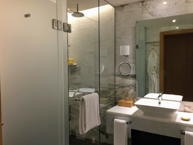 房間部分,床很舒服、棉被也是、但織品的質量沒有曼谷大倉久和那麼細緻,毛巾和浴袍有點粗,廁所的乾濕分離沒用水會潑出來,這點有點扣分。