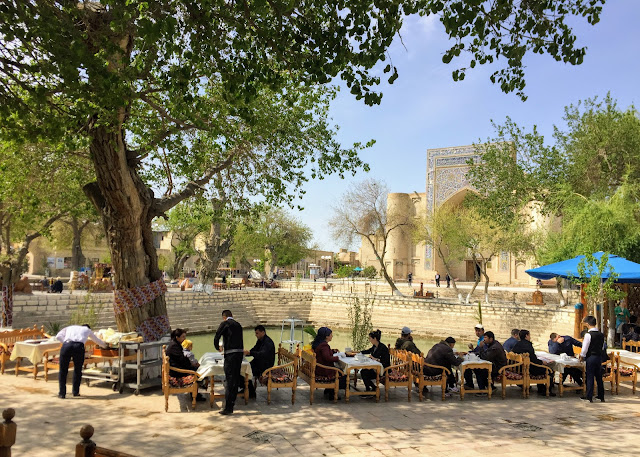 布哈拉另一個必去的景點是Lyab-i-Hauz,是一個古蹟圍繞的水池,布哈拉以前有很多水池,供應民生用水,後來成為傳染疾病的溫床,1920年代水池都被填平了,只有這一個保留下來。