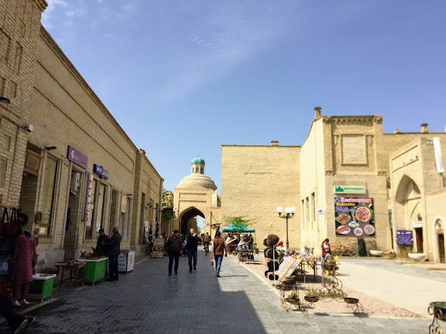 從薩馬爾罕來到布哈拉覺得這裡好小,全部景點都在一個小城裡。布哈拉自稱自己是一千零一夜的故事場景,真實性有待查證,但布哈拉古老狹窄的小巷迷宮真的彷彿有阿里巴巴和四十大盜的臨場感,跟壯觀的薩馬爾罕比起來,布哈拉更像是一個沉浸式的波斯體驗。