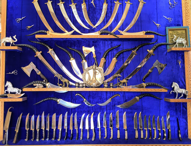 看了Peiyu的書介紹,來烏茲別克最想買的就是布哈拉的鳥剪刀,手工鐵打的立體鳥型剪刀真的很別緻,但實在是很貴又很難剪,我後來還是買了比較實用的扁型鳥剪刀,又腦波弱買了雕了駱駝圖案的突厥彈簧刀。
