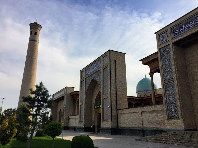 塔什干的古城中心叫做Hazrati Imam complex,是好幾棟清真寺、神學院和陵墓組成的廣場。所有建物都是塔什干1966年大地震後重建的,在薩馬爾罕和布哈拉看完眼花撩亂的古蹟之後,看塔什干的這些嶄新清真寺真的看不上眼。