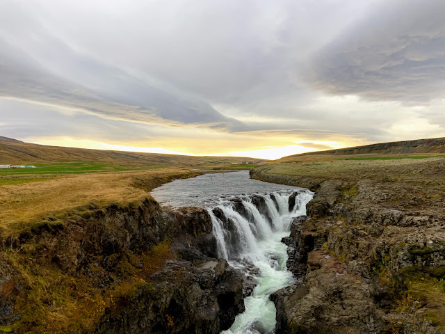 【Glanni瀑布】- 這座瀑布的記憶點很低,低到排名最沒有記憶點的瀑布時都忘記有它,因為剛剛下雨登山,所以士氣很低迷,導遊一再跟我們保證說,這裡只要走100公尺就好了,仔細想想,我可能寧願花時間去走Grábrók火山旁邊更長的健行路線,跟一直上下車看很多景點比起來,我好像比較喜歡在一個景點走一段比較長的健行。