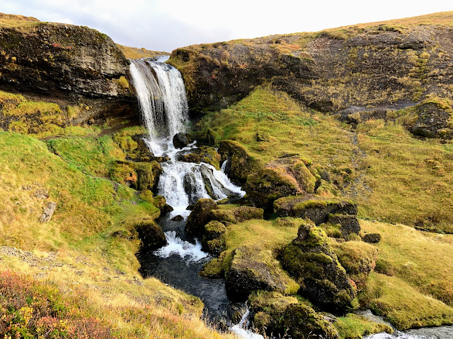 導遊在鯊魚博物館帶著我們走馬看花,很快催促我們離開,因為他說他想帶我們去看一個秘境瀑布,是他本人不小心發現的,那裡是綿羊瀑布,據說是因為有人看過綿羊在瀑布後面走路, 綿羊瀑布真的蠻美的,想到它是我們在冰島看到的最後一個瀑布,還有一點捨不得離開。