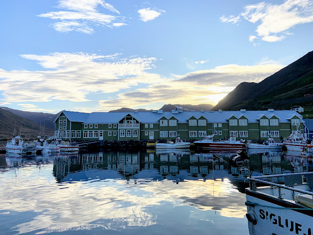 小鎮原本以捕鯡魚聞名,有一天忽然就沒有鯡魚可以捕了,小鎮就沒落下來,直到有個來自這個小鎮的人,在外面賺了錢回到小鎮,在港口旁邊開了一間彩色房子的高級飯店【Sigló Hótel】,旁邊有些居民起而效尤把房子漆成彩色,還開了滑雪場,小鎮從此躍上冰島觀光的版面,成了冰島必遊的16個小鎮之一。