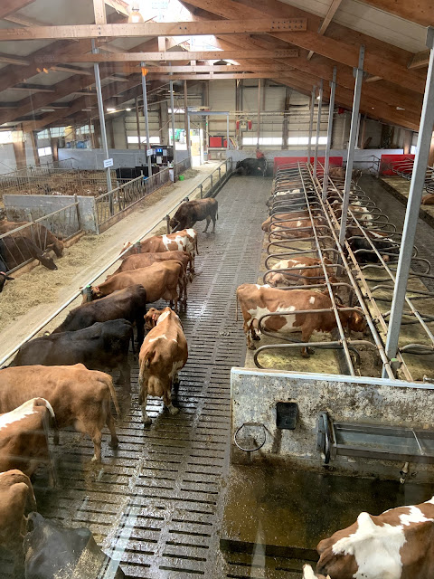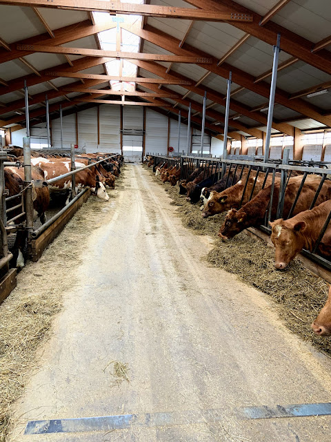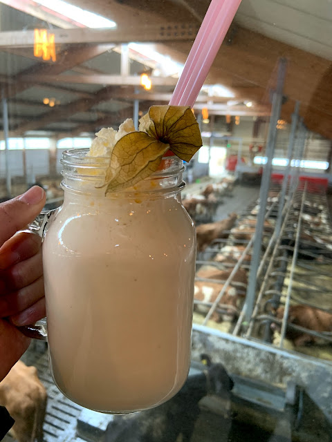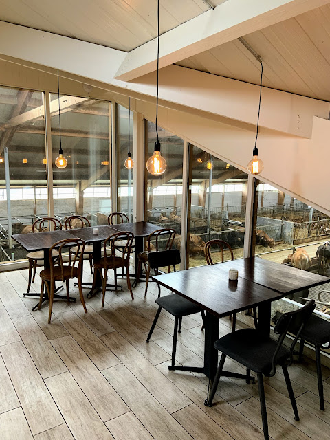 最讓我驚豔的是牧場的咖啡店在牧場的樓上,咖啡店是一個玻璃屋,可以隔著玻璃窗鳥瞰牧場,一堆牛在走來走去和吃草,視覺效果非常震撼,而且咖啡店的內裝也是漂亮的現代北歐風,融合地完美無暇,台灣的牧場咖啡店總是土味十足,也不能鳥瞰牧場,我第一次看到這種牧場咖啡店,設計得太棒了。唯一的缺點是咖啡店還是有牛的臭味。