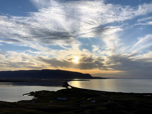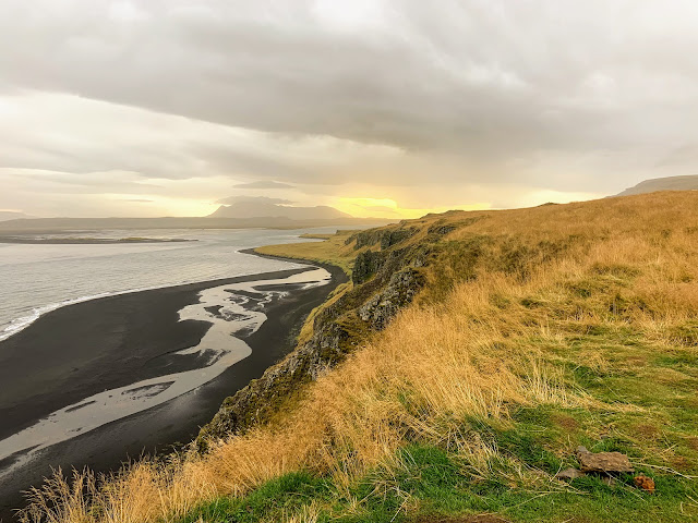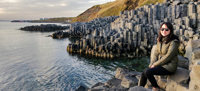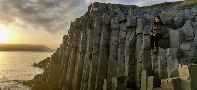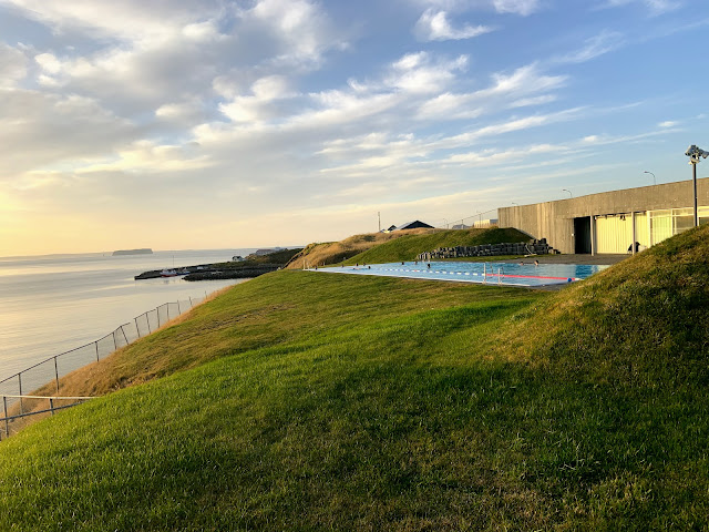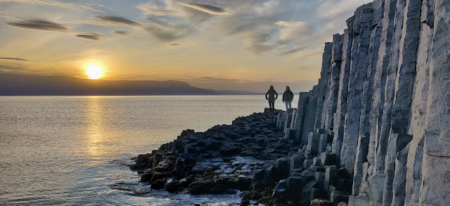 傍晚來到【Hofsós小鎮】一個無人的玄武岩石柱沙灘【Staðarbjargarvík】,夕陽西下時,那裡真的太美了,在小鎮的溫泉游泳池游泳看夕陽看起來也很愜意。游泳是冰島的國民運動,到處都是溫泉游泳池,有機會的話真的應該在冰島游泳一下。