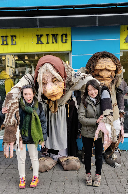 一到Akureyri我就發現我的手套不見了,手套是今年初在義大利小店買的,好看又粗勇,可以凹造型,也可以充當登冰川手套,掉了有點傷心,逛街逛得心不在焉,一直在想我的手套。我記得我沒有帶手套去牧場,循線看了導遊幫我照的聖誕村照片,發現手套當時搖搖欲墜地拿在手上,還好剛剛有打星星,抱著一種姑且一試的心情,打了Google Map上的電話問聖誕村有沒有撿到我的手套,店員說有,我喜出望外地請導遊開車帶我們回去拿手套,也因此獲得逛聖誕村的機會。本來以為很觀光,結果意外地好逛,賣的東西很精緻。