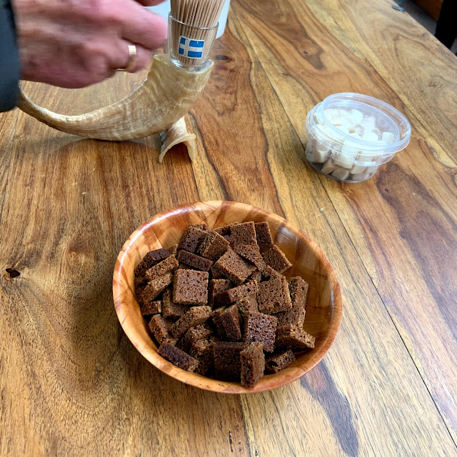 一直聽說冰島暗藏地獄來的難吃食物,其中之一就是尿味鯊魚魚乾,我們在鯊魚博物館試吃了鯊魚魚乾,導遊說吃鯊魚魚乾的訣竅就是要一邊吐氣一邊吃,他說就連冰島人也不會去大口聞那個味道。