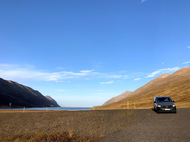 冰島路上蠻多越野遊覽車,Gunnsi開的是一台賓士廂型車(車盲是我),南部的羽毛峽谷和東部北部的路況還是蠻越野的,有時候開一些山中小路蠻顛簸的,感覺不像在坐賓士,比較像在坐Mazda。