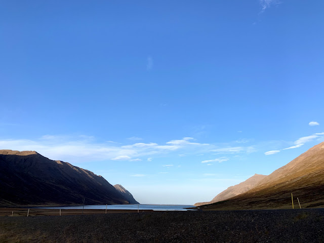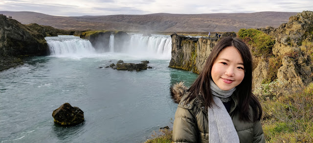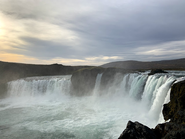 第8天 (環島第6天)- 這天走城市路線,早上去了一個有故事性的【眾神瀑布Godafoss】,接著逛了我很喜歡的牧場咖啡【Kaffi Kú】、朋友很喜歡的聖誕村【Jólahúsið聖誕村】、冰島第二大城 【Akureyri】,然後在北部峽灣一直拉車,風景和氣氛都很像淒美的蘇格蘭,最後去一個無人沙灘看玄武岩石柱和夕陽。