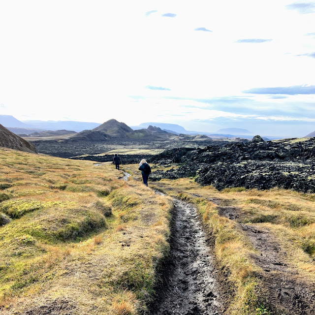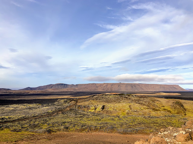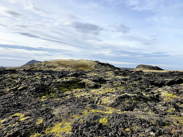 今天第一個健行是【Leirhnjukur火山】,這是冰島北部我最喜歡的景點,黑色熔岩、黃色硫磺、綠色苔癬交織的地形,我從來沒有看過這種景觀,非常特別,有種末日的美。