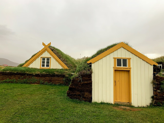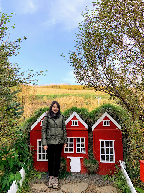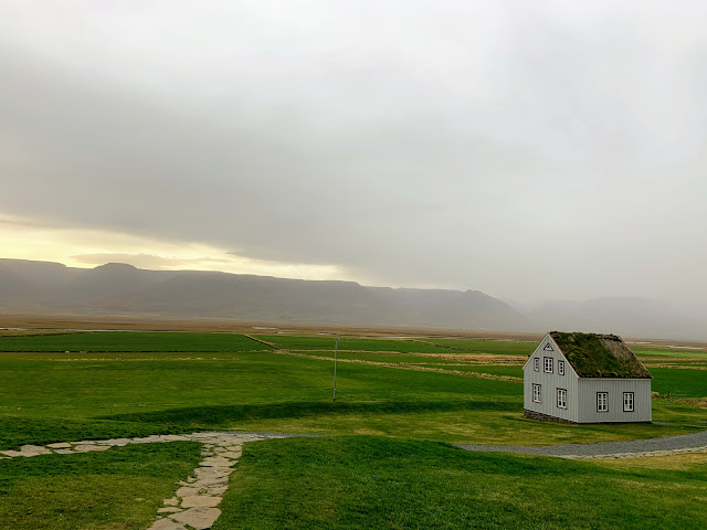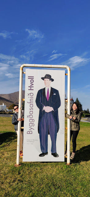 今天的第一站【Glaumbær turf houses】沒有開,又是冬季的問題。這是一群有故事的維京人草房,原來維京人號稱比哥倫布更早「發現」新大陸,他們是航海去格陵蘭時不小心漂過去的。他們請印地安人喝牛奶,結果對方有乳糖不耐症,喝了拉肚子,所以以為維京人要毒害他們,就跟他們打起來,維京人覺得印地安人很難相處,又跑回來冰島,這裡是那群發現北美洲的冰島人的家。