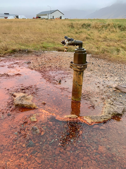 【Ölkelda天然氣泡泉水】- 這裡的地下泉水因為某種緣故天生有氣泡,而且鐵質含量很高,某個人幫它裝了一個水龍頭,讓大家可以打開來裝水喝。喝起來像是加了氣泡的血水,相當古怪。,適合吸血鬼午餐時喝吧。