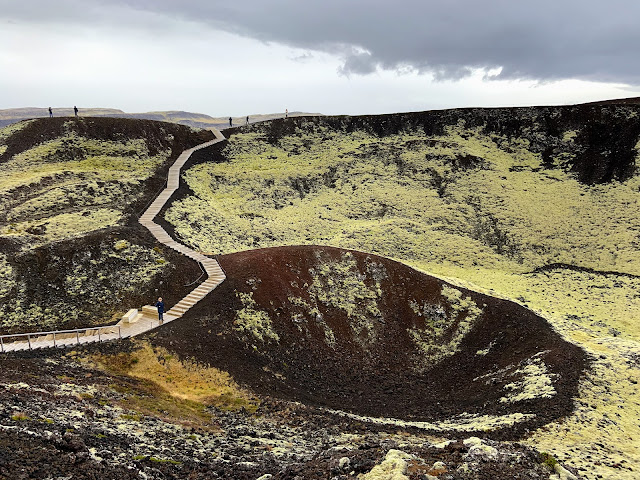 【Grábrók火山】健行 - 一座長的很像抹茶熔岩蛋糕的火山,火山口很圓,步道非常整齊,旁邊還有另一座更像抹茶熔岩蛋糕的火山。健行還不錯,可惜有下雨。