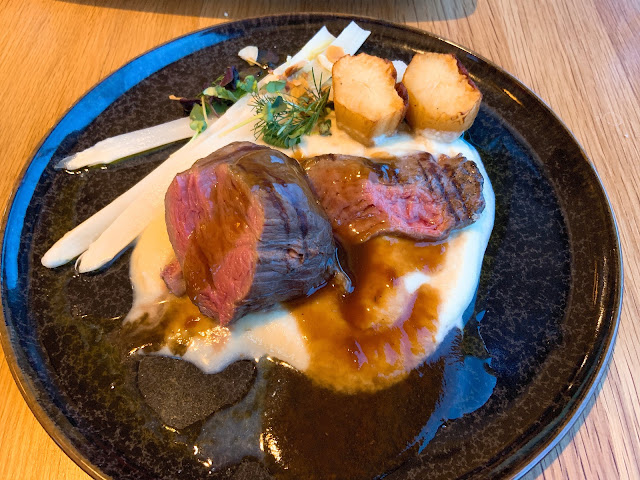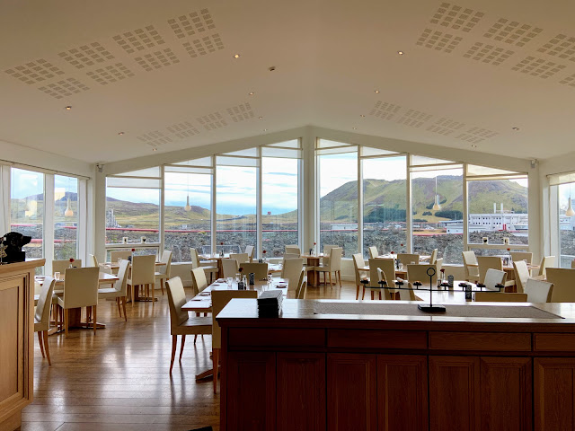 飯店的主人也是主廚,長相非常維京人,晚餐時間很熱情的一直在餐廳走動招呼客人,晚餐吃了馬肉牛排,雖然點了三分熟,但吃起來像七分熟,肉比較老,沒有特別的味道,馬肉不會想吃第二次。