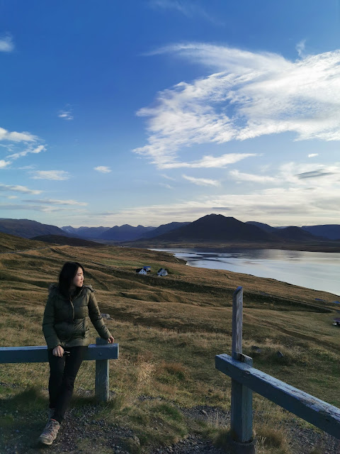 導遊媽媽的家的下一個小鎮,是世界盡頭小鎮【Skagafjörður】,很多彩色房子,海邊倒影很美,有奧地利Hallstatt的感覺,但導遊大概不懂這種Instagram worthy的意境,在他眼中大概就是一般房子,所以沒有停下來讓我們拍照,我遲疑了一下要不要開口叫他停下來給我們拍照,立刻就錯過了時機。