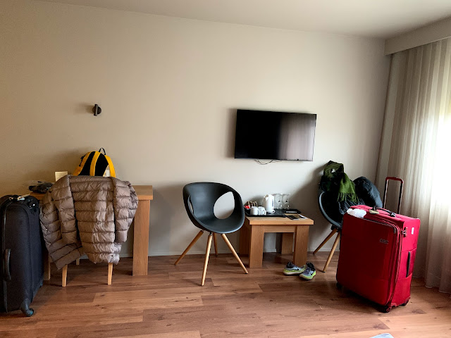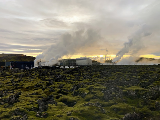 Northern Light Inn因為在發電廠旁邊,所以它的餐廳景觀、步道景觀,和某一面的房間景觀,都是電廠景,可能跟典型的天然美景不太一樣,走步道的時候一開始會覺得這個是什麼步道啊,就是朝著一大棟冒著白煙的發電廠一直走去,旁邊還有挖土機,不過細看發電廠中間水柱狂噴、屋頂狂冒煙的景象也蠻有趣,也是一種冰島風情的趣味風景吧。