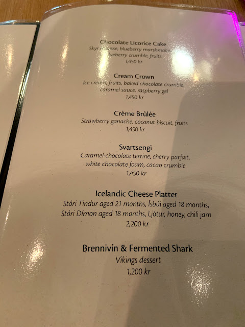 餐廳吃起來蠻中規中矩的,跟冰島到處的飯店餐廳吃起來差不多,它的亮點是甜點,種類繁多,而且有世界第一難喝的冰島黑死酒搭配尿味的鯊魚肉,太狂了,我們不敢點。